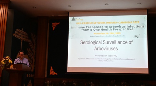 The Pasteur Institute of Iran (PII) contributed to the international course, IUIS–Pasteur Network Immuno-Cambodia 2025, through the participation of its representatives. Dr. Mostafa Salehi Vaziri, Associate Professor of Medical Virology, served as an invited international instructor, reflecting the institute's active role in global arbovirus research. Held from November 24 to 29, 2025, in Siem Reap, Cambodia, the course was organized by the International Union of Immunological Societies (IUIS), the Pasteur Network, and the Pasteur Institute of Cambodia. It brought together 40 selected students and early-career researchers from across Europe, Asia, Africa, and South America for an intensive program focused on "Immune Responses to Arbovirus Infections from a One Health Perspective."